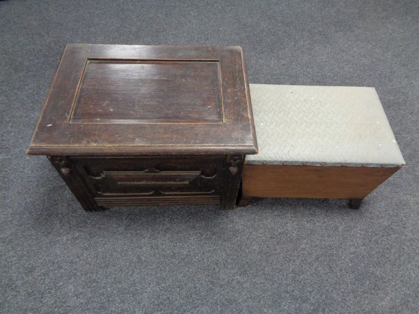 A nineteenth century oak storage box together with a further storage stool