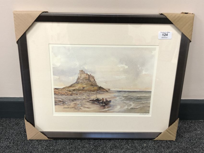 After Tom MacDonald : Lindisfarne Castle, reproduction in colours, signed in pencil, 21 cm by 30 cm, framed.