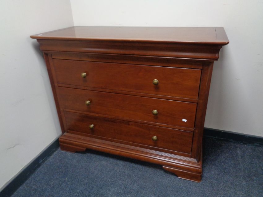 A good quality three drawer chest in mahogany finish with brass handles