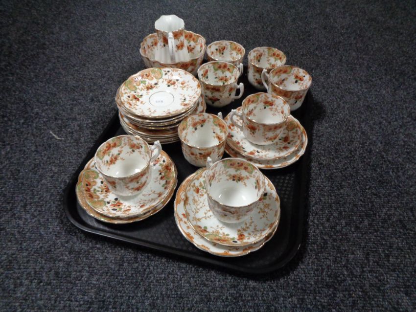 A tray of twenty six pieces of antique Duke floral pattern tea china
