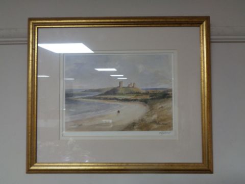 After Tom Macdonald, signed print of Dunstanburgh Castle