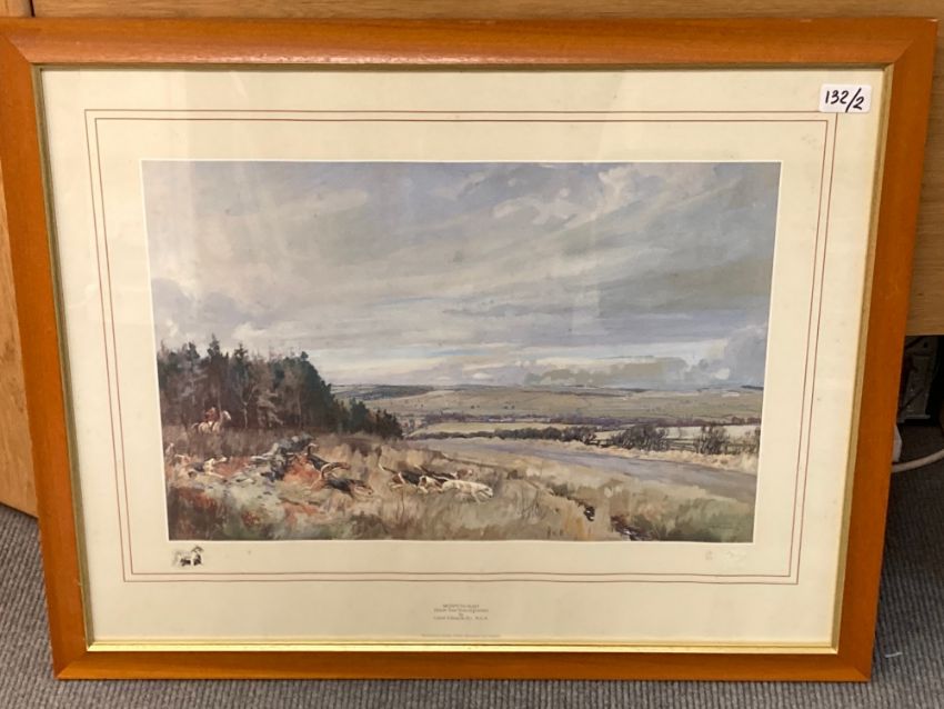After Lionel Edwards : Morpeth Hunt - Captain Atkinson M.F.H. on Berwick Castle (North East End of Bolam Crofts), reproduction in colours, with printed remarque, numbered 120/600, with the blindstamp of Chelsea Green Editions, 33 cm x 49 cm, together with the companion piece "Morpeth Hunt - South East End of Corlaw", framed as a pair. (2)