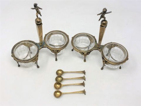 A fine pair of silver gilt nineteenth century French double salts in the Egyptian revival style with four spoons