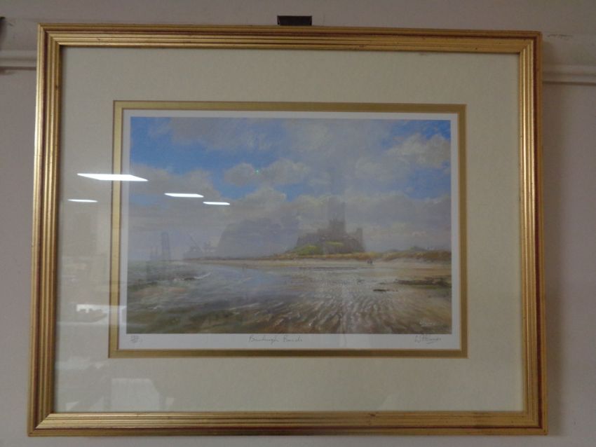 After Walter Holmes, Bamburgh Beach, limited edition print no. 122/900, signed