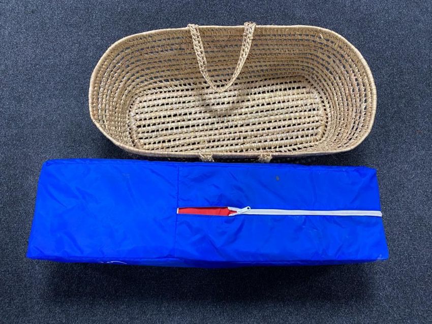 A Graco Cumfi folding travel cot together with a Moses basket.