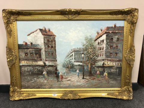 Continental school : Figures in a Parisian street, oil on canvas, 90 x 60 cm, signed Hormis, framed.