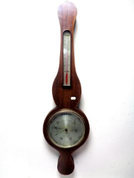 A mahogany cased banjo barometer by John Derry of Nottingham, with silver dial.