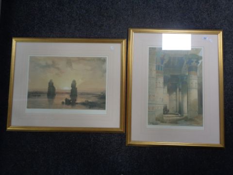 Two David Roberts prints, View under the Grand Portico and Statues of the Memnon at Thebes. (2)