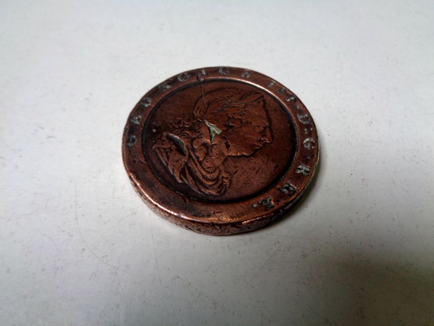 A late 18th century cartwheel penny.