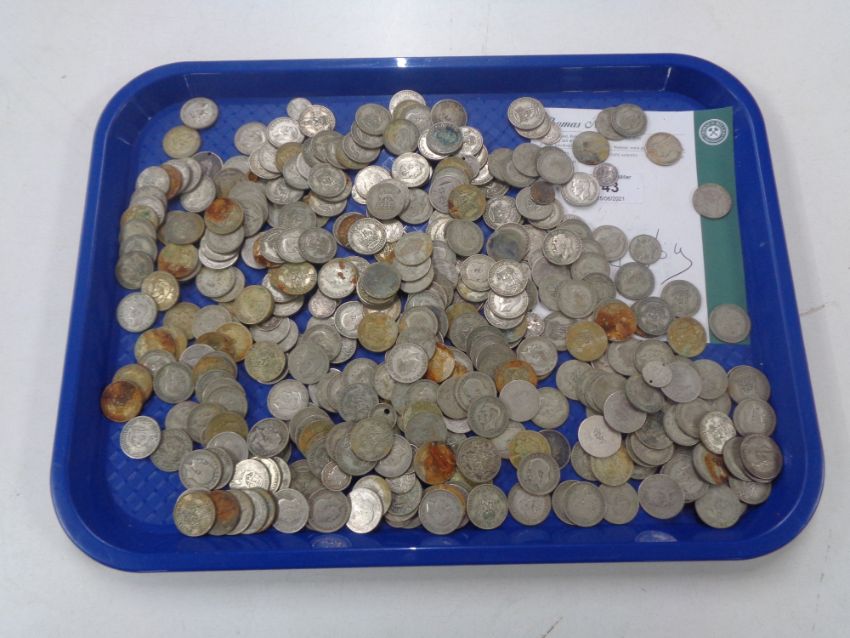 A large collection of pre 1947 silver one shillings, approximately 1886g.