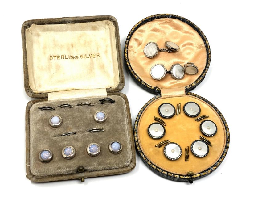 A collection of studs and cufflinks, some parts silver.