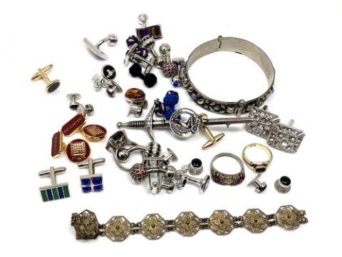 A collection of silver and other jewellery, cufflinks, bangle etc