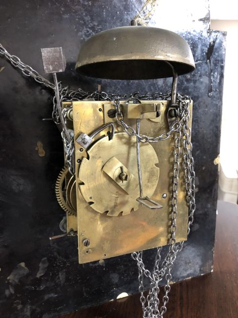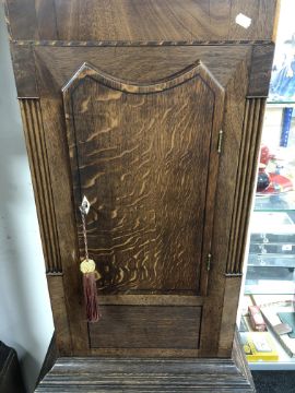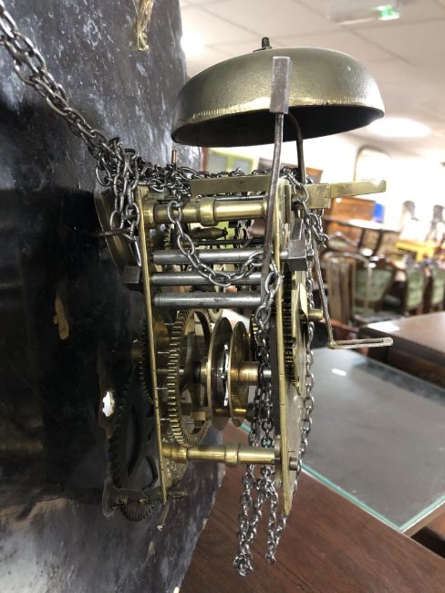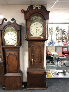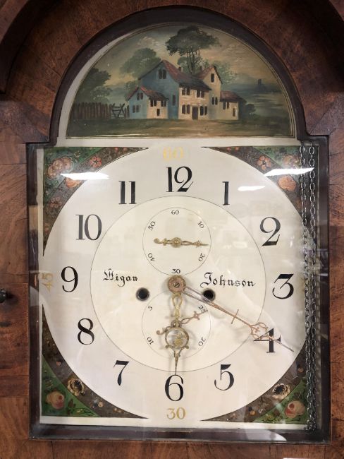 A 19th century longcase clock with painted dial signed Johnson of Wigan, with one weight and no pendulum