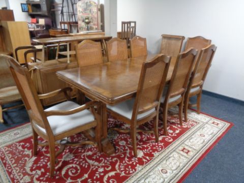 A John Lewis Frank Hudson Poppy Oak and Ash Refectory Extending Dining Table, together with two leaves, and a set of eight bergere-back dining chairs (two carver armchairs and six single dining chairs).