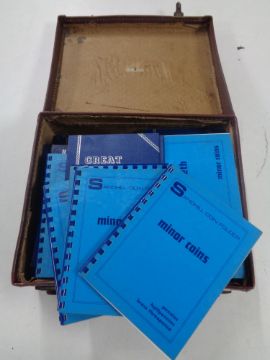 A leather case containing numerous vacant British coin collection folders and albums. (Q)