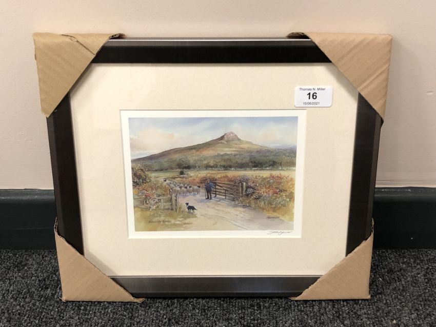 After Tom MacDonald : Roseberry Topping, reproduction in colours, signed in pencil, 13 cm by 18 cm, framed.