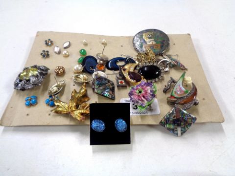 A collection of jewellery to include brooches, earrings, Sterling silver boat brooch etc.