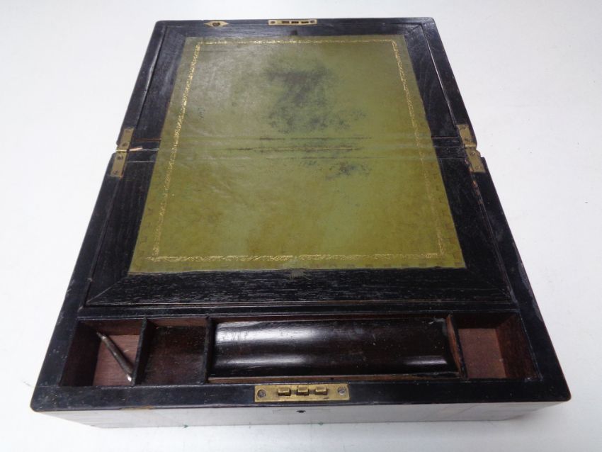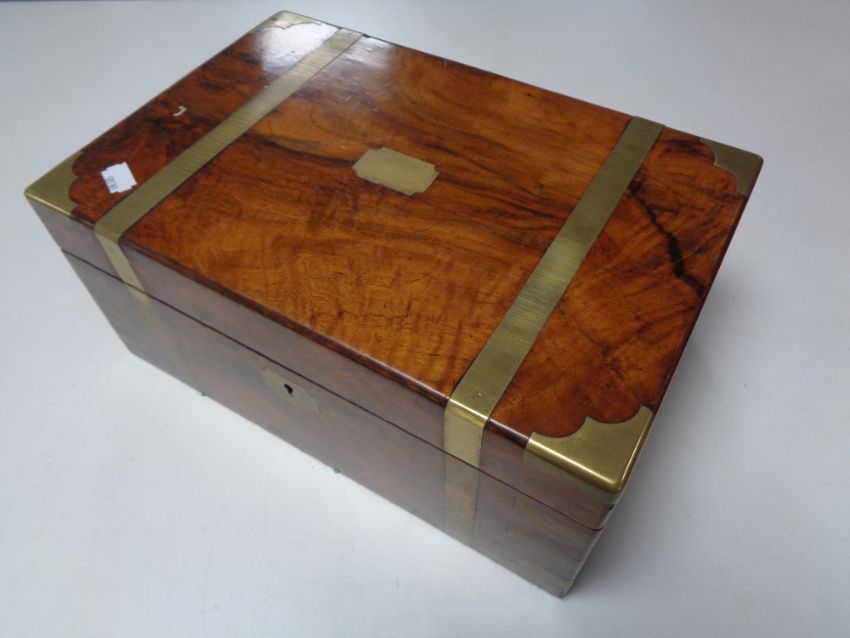 A 19th century walnut brass bound writing slope