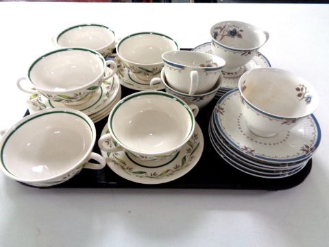 A tray containing 13 pieces of Royal Doulton Almond Willow tea china together with 14 further pieces of Royal Doulton Old Colony tea china.