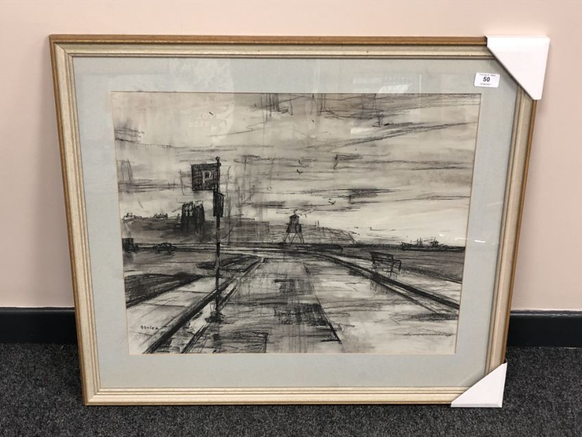 Alfred "Alf" Ainslie O'Brien (1912 - 1988) : The Beacon at South Shields, charcoal, signed, 48 cm x 58 cm, framed.