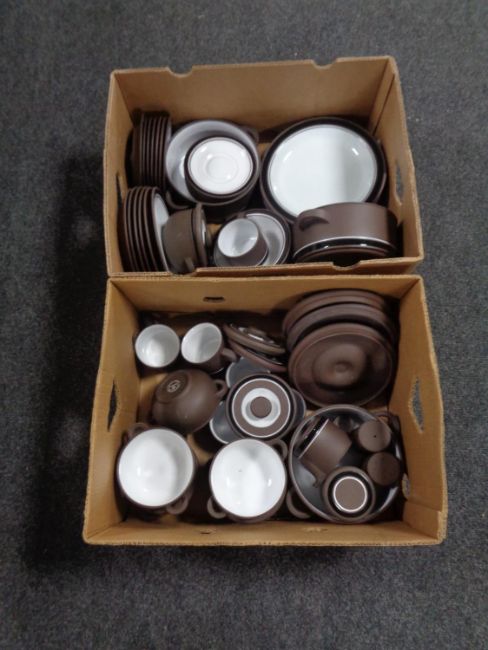 Two boxes containing Hornsea Vitramic tea and dinner ware.