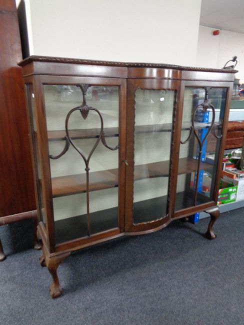 An Edwardian mahogany bowfronted display cabinet on claw and ball feet