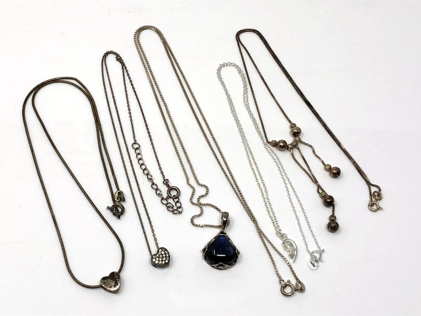 Five silver pendants/necklaces. (5)