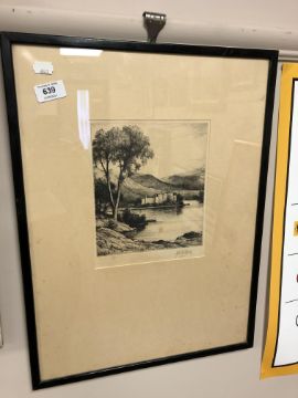 After John Fullwood (1854-1931) : Loch Awe (Kilchurn Castle), drypoint etching from an edition of 150, signed to margin, 18 x 22 cm, framed.