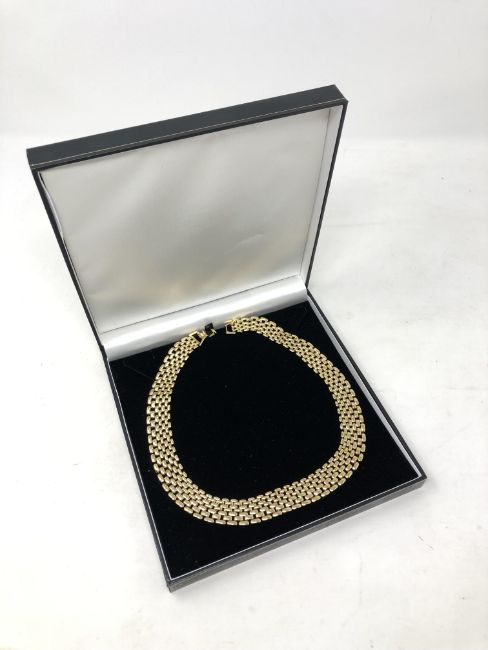 A gold plated flat link necklace.