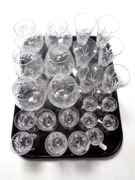 A tray of assorted lead crystal drinking glasses