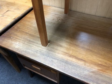 Top heavily faded and not uniform in colour. Scuffs and scratches to the legs. There is quite a bit of movement in the leg joints. See images.