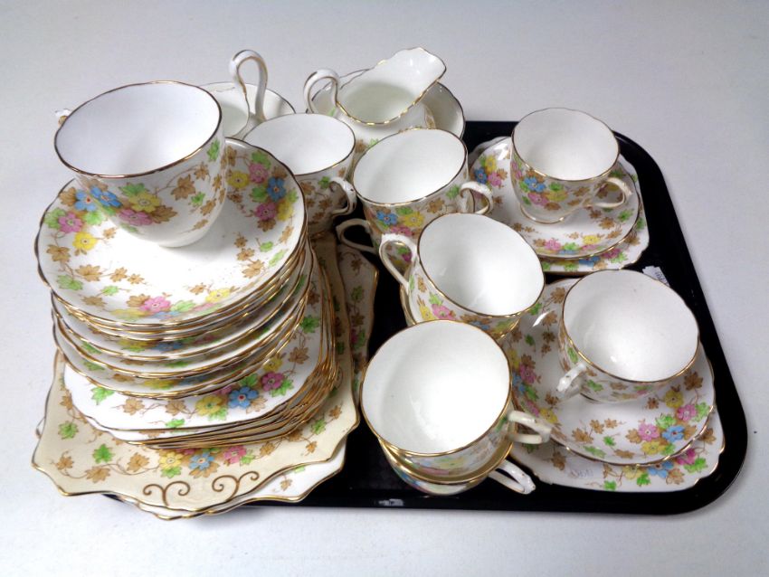 A tray containing 40 pieces of Tuscan plant floral patterned tea china.