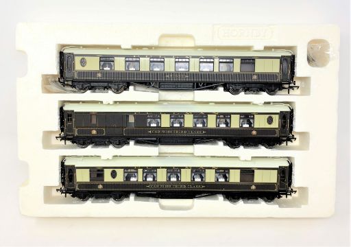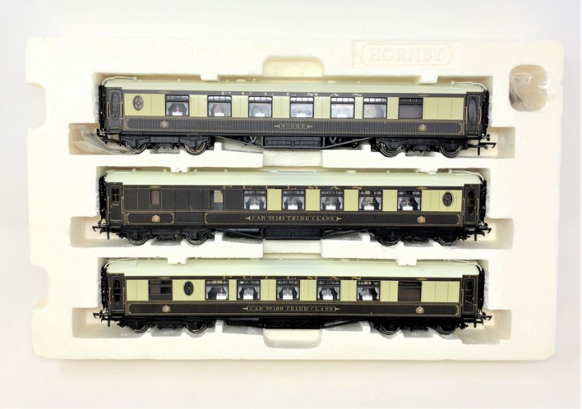 Hornby : Three 00 gauge pullman carriages 'Niobe', 'Car No 161 Third Class' and 'Car No. 166 Third Class', in part box, lacking cover.