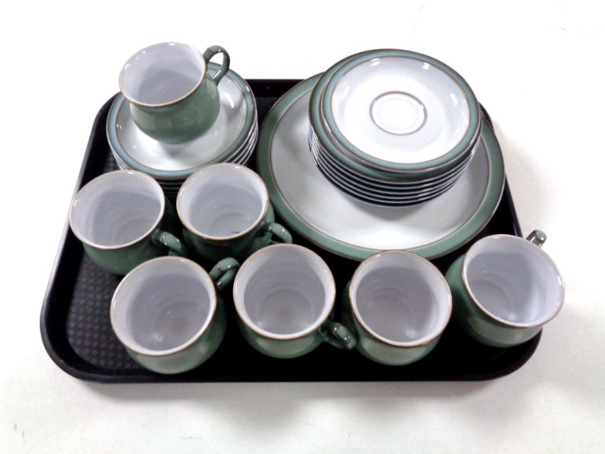 A tray of twenty pieces of Denby Pottery tea and dinner ware