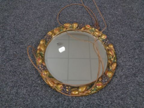 A circular bevel edged barbola style mirror.
