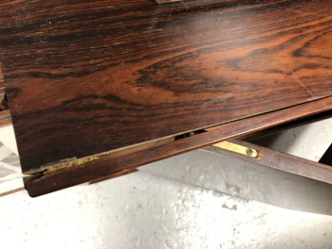 The lower unit has problem with the left side door. When it is opened the pin pulls against the timber and a strip of wood is starting to coming away. Both units with typical scuffs and scratches but seemingly otherwise in good condition. See images.