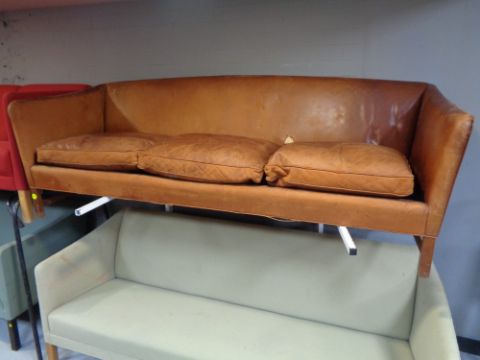 A 20th century continental brown leather three seater settee (a/f).