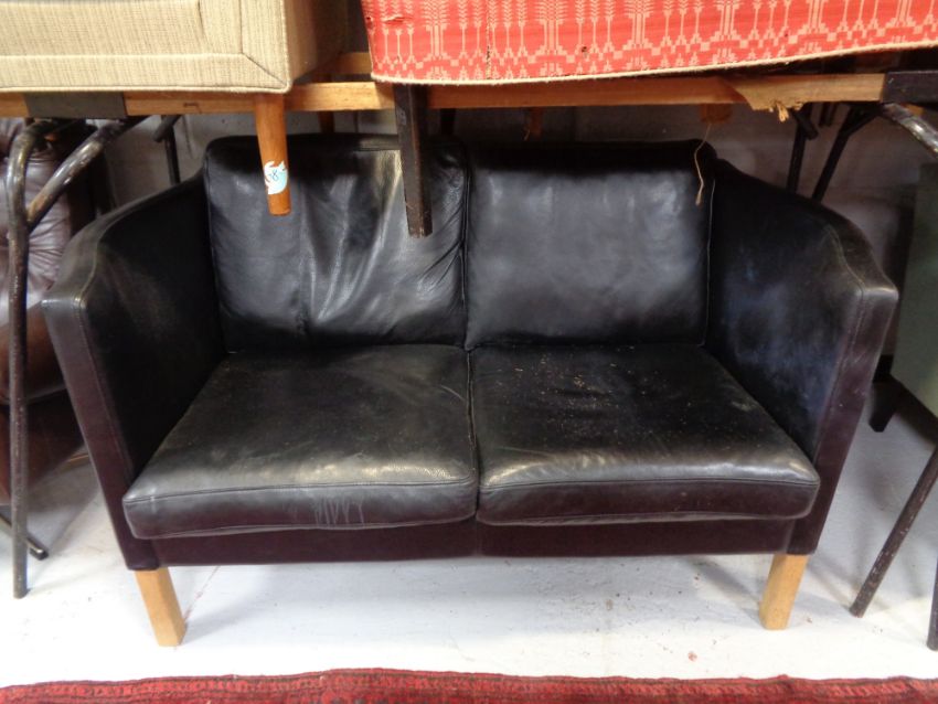 A 20th century Danish black leather two seater settee.