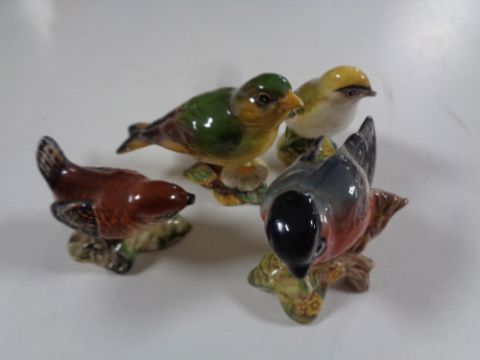 Nine Beswick bird ornaments to include bullfinch, blue tit, wren, green finch etc (as found).