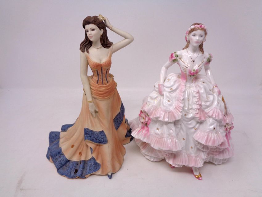 A Royal Worcester figure, Royal Debut No. 2144 of 12500 and a Coalport Age of Elegance figure of the Year 2000 Regency Gala.