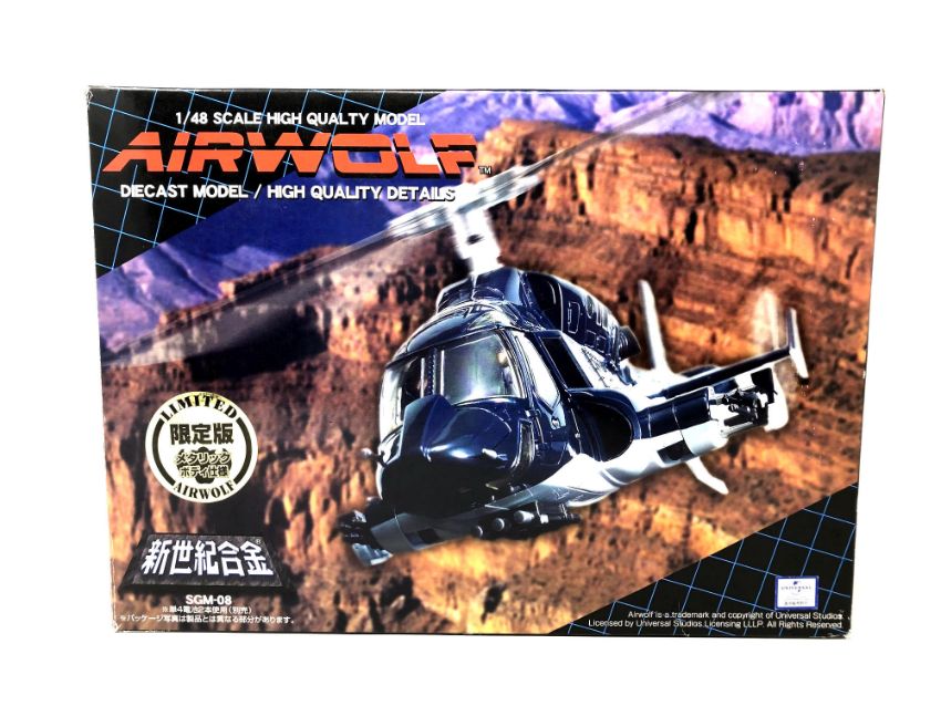 An Airwolf diecast model 1/48 scale limited edition, box dimensions 33.5 cm x 24 cm.