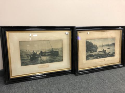 Early Twentieth Century School : Herring Trawlers, photogravure, 28 cm x 49 cm, together with the companion piece "Landing the Catch", framed as a pair. (2)