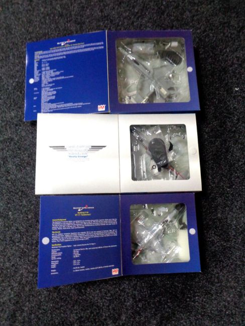Three boxed Hobbymaster die cast model aircraft, Northrop F-5N, F-104C TFW and McDonnell Douglas F/A-18C. (3)
