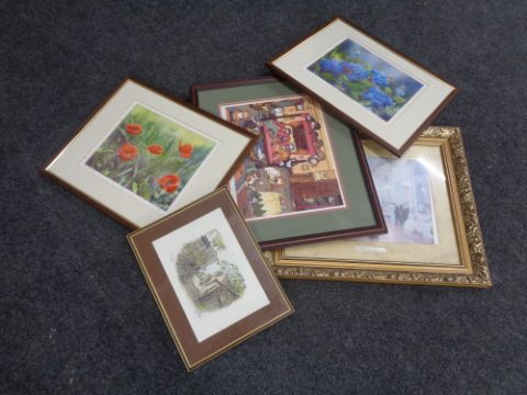 Five prints including two Margaret Harrison signed limited edition prints, poppies hydrangea etc.