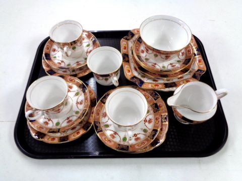 A tray containing 19 pieces of Colclough Imari patterned tea china.