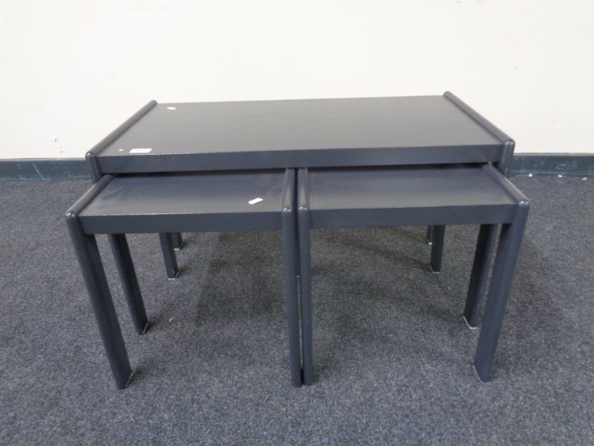 A nest of three 20th century painted teak tables
