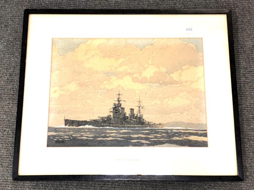 Fred Jay Girling : H.M.S King George V, watercolour with body colour, signed, 27 x 38 cm, framed.