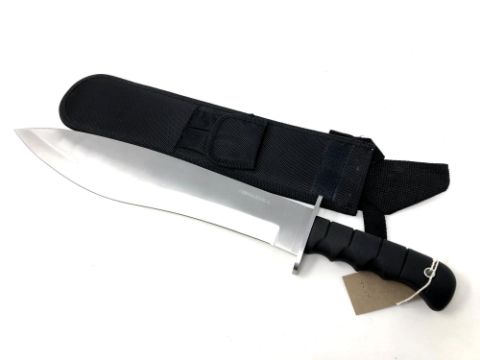 A Nakura hunting knife, blade length 35 cm, with black nylon sheath.