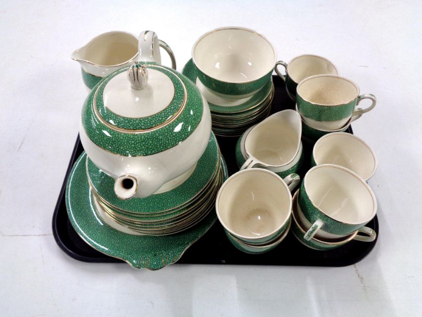 A tray containing 37 pieces of J and G Meakin green and gilt tea china.