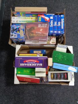 Two boxes containing a large quantity of modern games and puzzles, die cast cars etc.